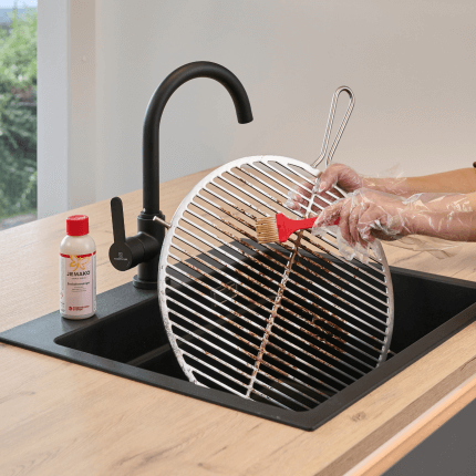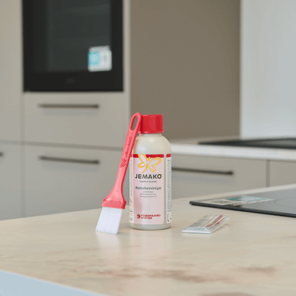 Ja, der Backofenreiniger kann auch für weitere Bereiche im Backofeninneren verwendet werden – etwa für Schienen oder die Innenseite der Tür – sofern die Materialien beständig gegenüber alkalischen Reinigern sind. Empfindliche Komponenten, wie Dichtungen, sollten hingegen mit dem Intensivreiniger gereinigt werden. Bei schwer zugänglichen oder technisch sensiblen Bereichen wie Lüftungseinheiten oder Heizspiralen ist besondere Vorsicht geboten: Es sollten nur Flächen behandelt werden, von denen der Reiniger anschließend vollständig entfernt werden.