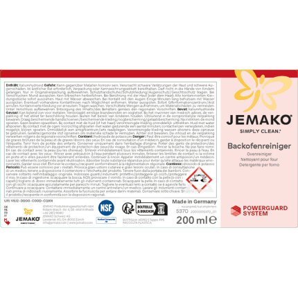 Sicher sauber - mit System! Der JEMAKO Backofenreiniger wirkt super kraftvoll gegen stark eingebrannte Rückstände und Verkrustungen im Backofen. Das POWERGUARD SYSTEM kombiniert dabei eine hochwirksame Reinigungstechnologie mit sorgfältig abgestimmten Komponenten wie Einweghandschuhen, Pinsel und Gebrauchsanleitung, um eine sichere und kontrollierte Anwendung zu ermöglichen.