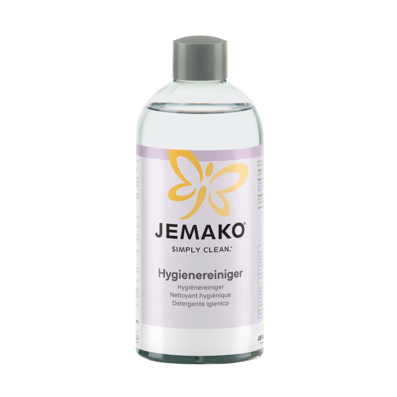 Vaporiser sur le chiffon pro JEMAKO sec et essuyer les surfaces à nettoyer. Pour nettoyer les sols de salle de bains, vaporiser simplement le nettoyant hygiénique directement sur la fibre pour sol verte à fibres courtes sèche et essuyer le sol. Dans les deux cas, il n’est pas nécessaire d’essuyer à nouveau.