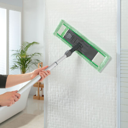 Trempez la fibre, essorez-la bien et nettoyez le sol avec un chiffon humide. Ensuite, essuyer avec une fibre de sol JEMAKO blanche et sécher.