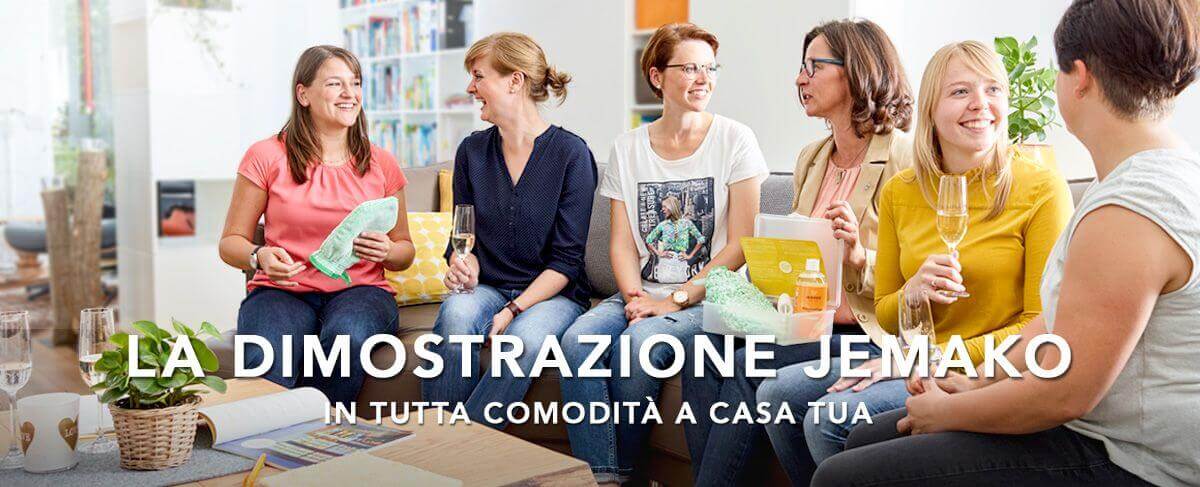 Invita i tuoi amici, i tuoi vicini o la tua famiglia, scopri tanti fantastici prodotti e approfitta di utili suggerimenti e astuzie su come pulire con JEMAKO. Un altro bel vantaggio: ospitando una presentazione a casa tua, potrai concederti una pausa dai lavori domestici. Il tuo Partner commerciale ne discuterà con te nei dettagli. -