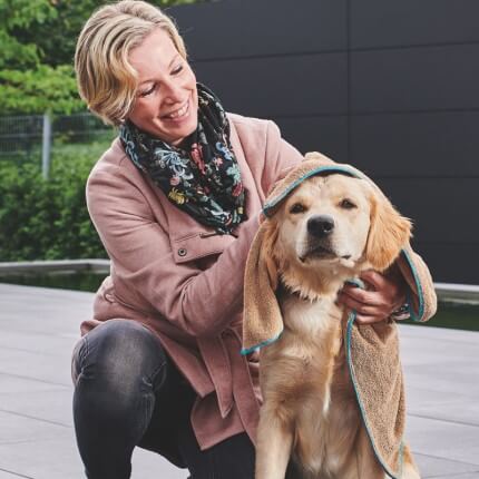 Il nostro Panno per pelo è l’aiutante perfetto dopo le passeggiate nell a pioggia, un tuffo nell’acqua fresca o un giro all’aria aperta. Il panno di cura estremamente assorbente e morbido cattura una grande quantità di spor co e acqua. Se utilizzato a umido è in grado anche di rimuover e dal pelo lo spor co essiccato.