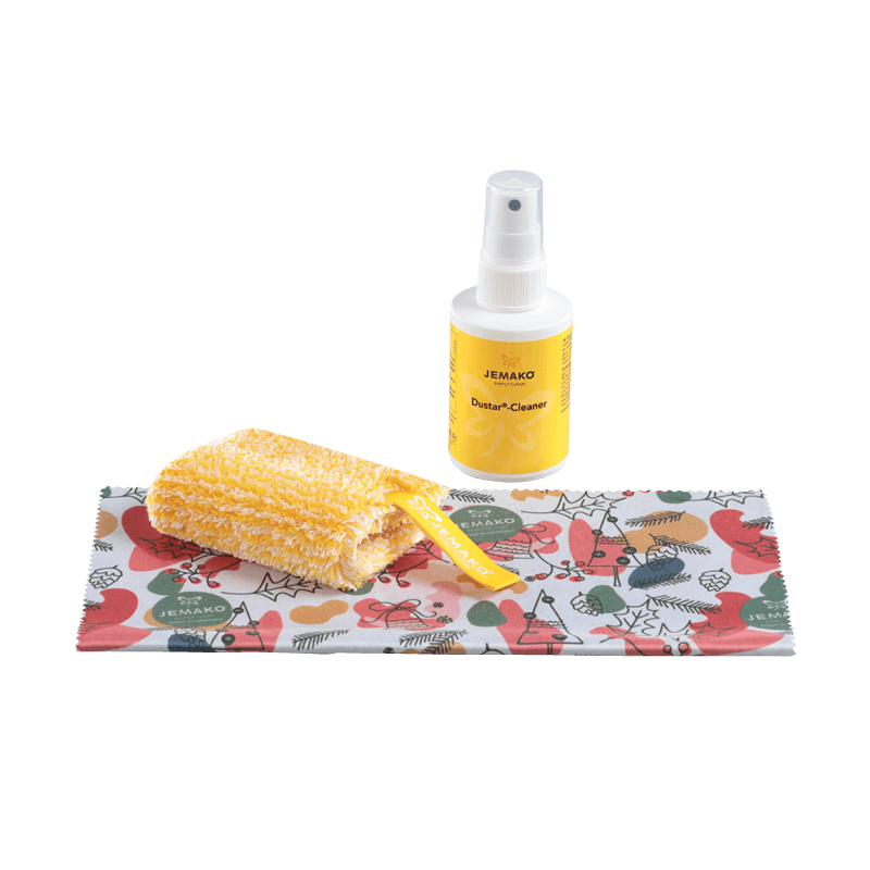 Il set è davvero perfetto per pulire i monitor, il display dell’automobile e i cellulari ma anche per spolverare la scrivania e la tastiera. Il Panno per display corrisponde a un formato speciale del Panno occhiali ed è ottimo anche per la pulizia asciutta di superfici delicate come i display.