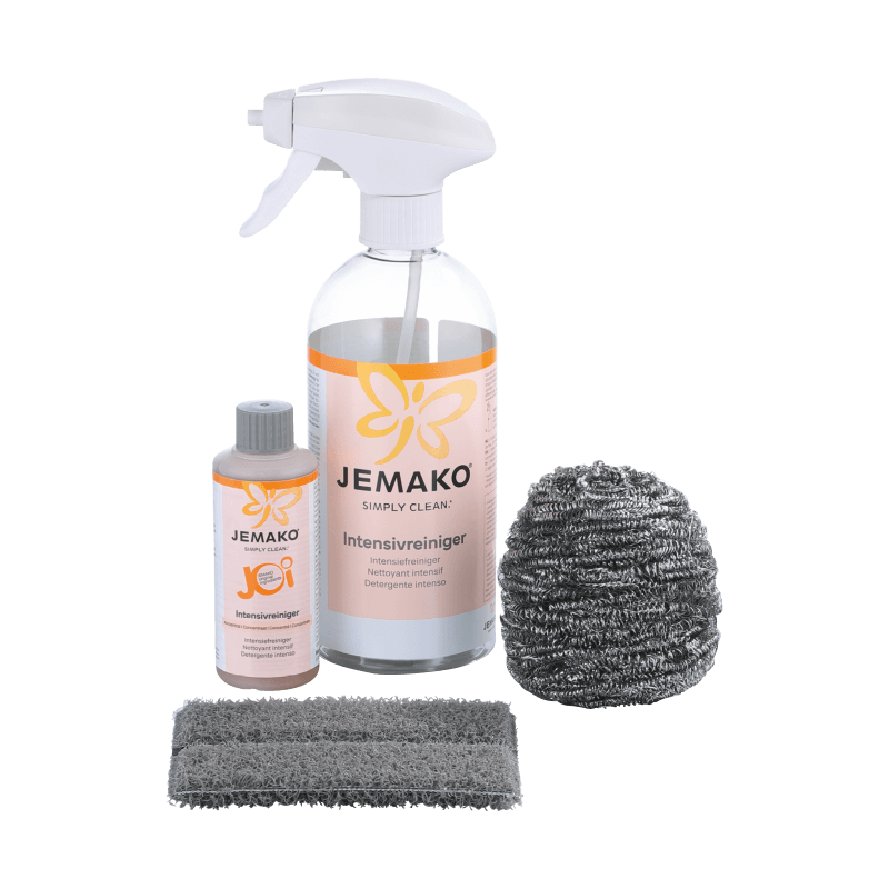 Passare sotto l’acqua calda gli utensili da cucina da pulire: teglia del forno, griglia, pentola (anche rivestita) ecc. e rimuovere le Trnnung in cro sta zio ni con il Panno Duo. In caso di incrostazioni di bruciato ostinate o residui di grasso spruzzare il Detergente forte non diluito sulla fibra o sulla Spirale inox, rimuovere lo sporco e quindi sciacquare con tanta acqua. Non utilizzare la Spirale inox su pentole e padelle con rivestimento antiaderente. Importante: le superfici devono essersi completamente raffreddate.
