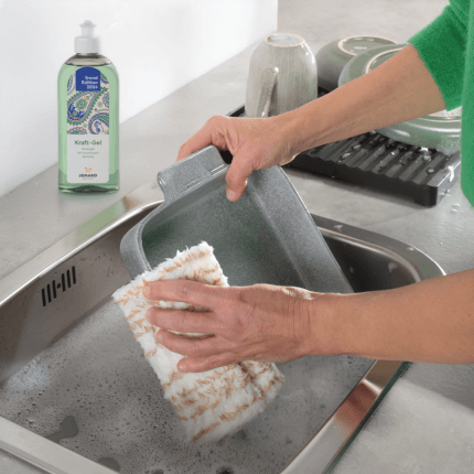 Het handafwasmiddel van JEMAKO: extra sterk tegen vuil en vet, zeer zuinig in gebruik.