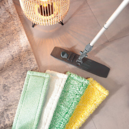 - Vochtig dweilen: gladde vloeren (bijv. laminaat en parket) die niet met microvezel mogen worden gereinigd, kunnen met de witte Vloervezel probleemloos vochtig worden gereinigd.